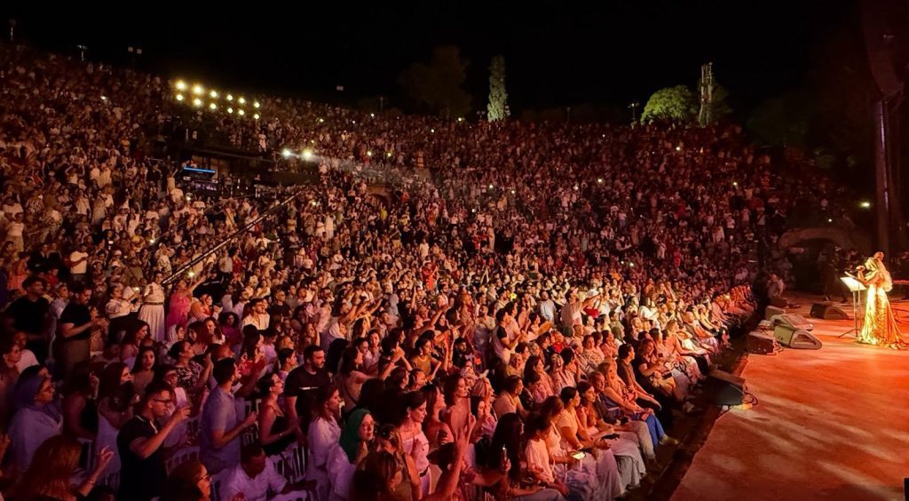 على مدار ساعتين ونصف، خطفت نجوى أنفاس الآلاف الذين ملؤوا مدرجات قرطاج التاريخية، حيث ردد الجمهور أغنياتها القديمة والجديدة، وخاصة من ألبومها الأخير “حالة طوارىء، كلمة بكلمة، في مشهد حوّل المسرح إلى كورال ضخم يصدح بحبها، وكان لافتًا حفظهم للأغنيات الجديدة مثل “يلعن البعد” وغيرها، وكأنها راسخة في وجدانهم منذ زمن.