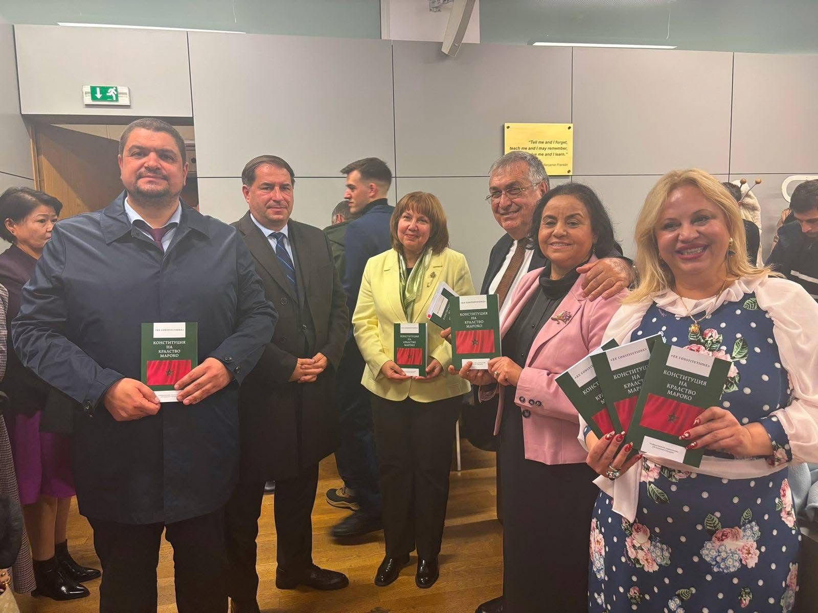 وتميّز الحفل بتقديم النسخة البلغارية من الدستور المغربي، مرفقة بدراسة تمهيدية معمّقة أعدّها البروفيسور جورجي بليزناشكي، أحد أبرز الخبراء الدستوريين في بلغاريا. وفي كلمته، أشاد البروفيسور بليزناشكي بالدور الريادي لصاحب الجلالة الملك محمد السادس في ترسيخ قيم الدستور وتعزيز مكانة التعليم، موجهاً تحية تقدير خاصة إلى السيدة الميداوي على جهودها المتواصلة في خدمة العلاقات المغربية البلغارية.