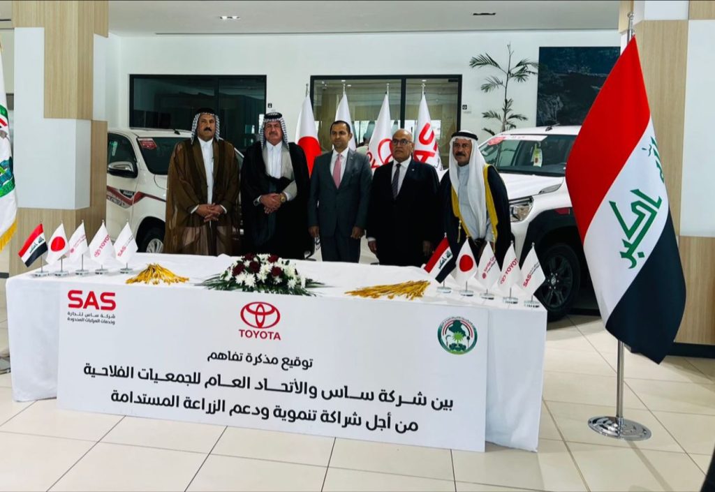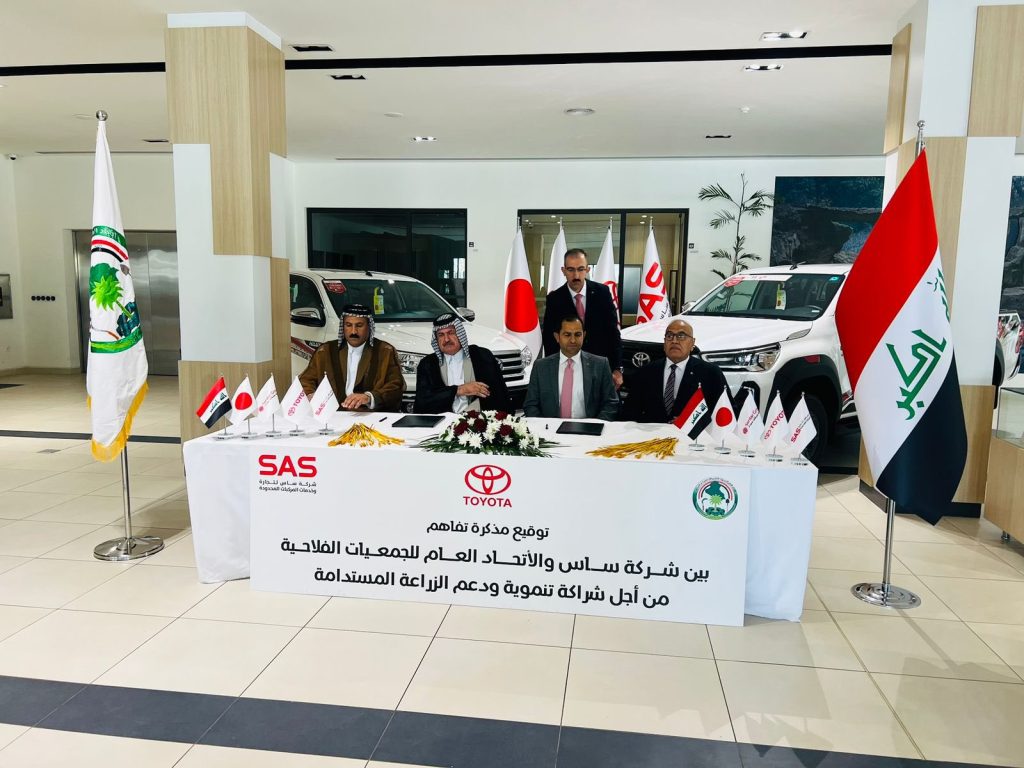 آشور/– شهدت العاصمة بغداد مراسم توقيع مذكرة تفاهم بين الاتحاد العام للجمعيات الفلاحية وشركة ساس للسيارات الموزع الحصري لسيارات تويوتا في العراق، بحضور السيد وسام الوطيفي رئيس الاتحاد العام والسيد عماد مكرود البديري نائب رئيس الاتحاد العام والسيد فاضل شنيت امين السر عدد من الشخصيات الرسمية والفلاحية.