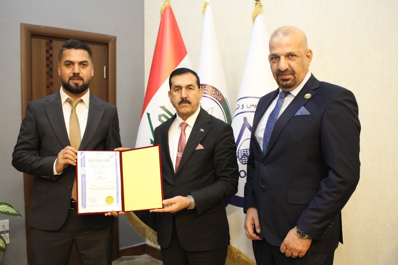 /آشور- منح السيد رئيس الجهاز المركزي للتقييس والسيطرة النوعية، الأستاذ الدكتور المهندس فياض محمد عبد، شهادة المطابقة العراقية لشركة دارين ستيل المتخصصة في صهر الحديد وإعادة تدويره وإنتاج الحديد الصلب وحديد التسليح، وذلك ضمن مجال تصنيع حديد التسليح في إقليم كوردستان – أربيل.