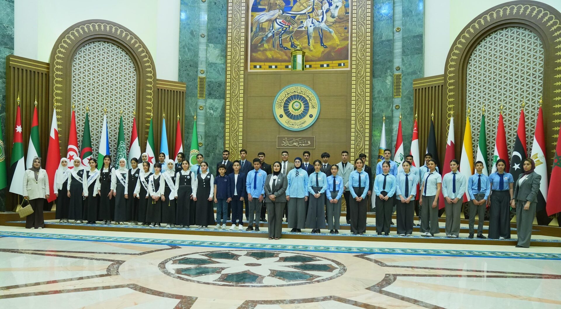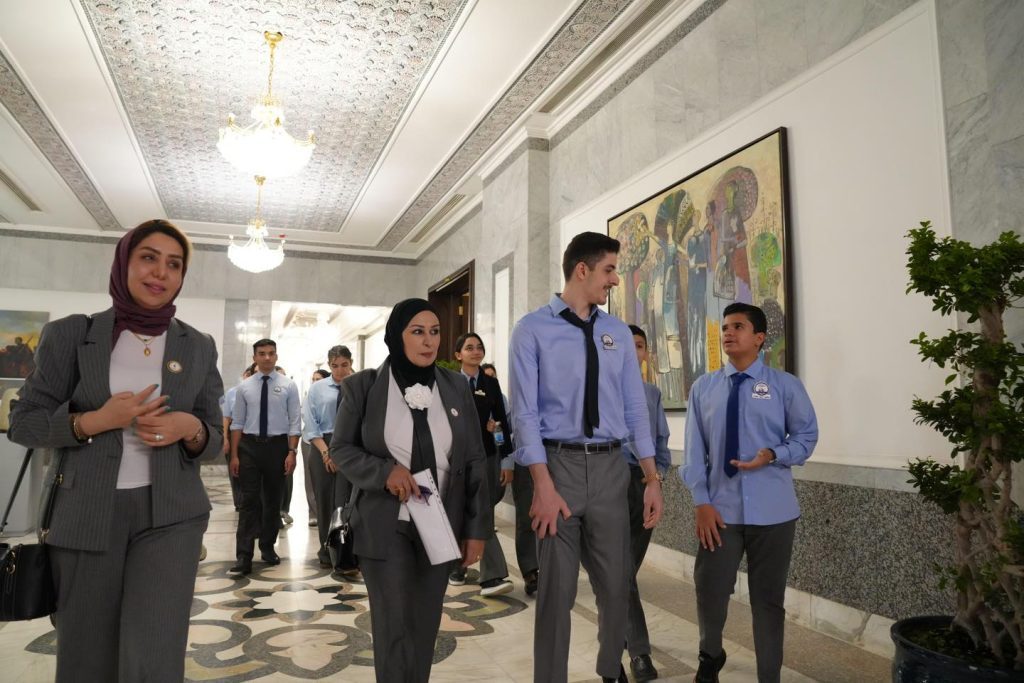وأضاف، أنه “جرى، خلال الاستضافة، القيام بجولة تعريفية على أهم قاعات القصر ومعالمه التاريخية، ومنها القاعات الكبرى التي انعقدت فيها وقائع القمتين العربية والتنموية اللتين استضافتهما بغداد قبل أيام، إلى جانب الاطلاع على القاعات التي تحمل أسماء أهم رموز العراق التاريخية والثقافية”. وأكد، أن “هذه الاستضافة جاءت في إطار تعزيز الروابط بين المواطنين والمؤسسات الرسمية، وإطلاعهم على أهم الأماكن الحكومية، وعملًا بتوجيه رئيس مجلس الوزراء محمد شياع السوداني بضرورة إجراء زيارات دورية لطلبة المدارس إلى المواقع الأثرية والدور الحكومية.(انتهى)