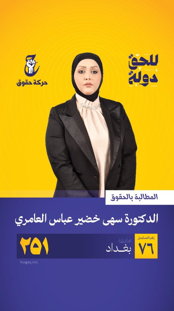 المرشحة عن حركة حقوق الدكتورة سهى خضير العامري