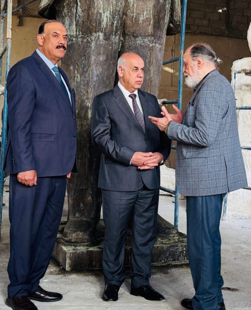 وأبدى السيد الوزير اعجابه بطريقة صب التمثال من قبل الكوادر الفنية التابعة لدائرة الفنون العامة، وقدم شكره للجهود المبذولة من دائرة الفنون التابعة لوزارة الثقافة والسياحة والآثار.