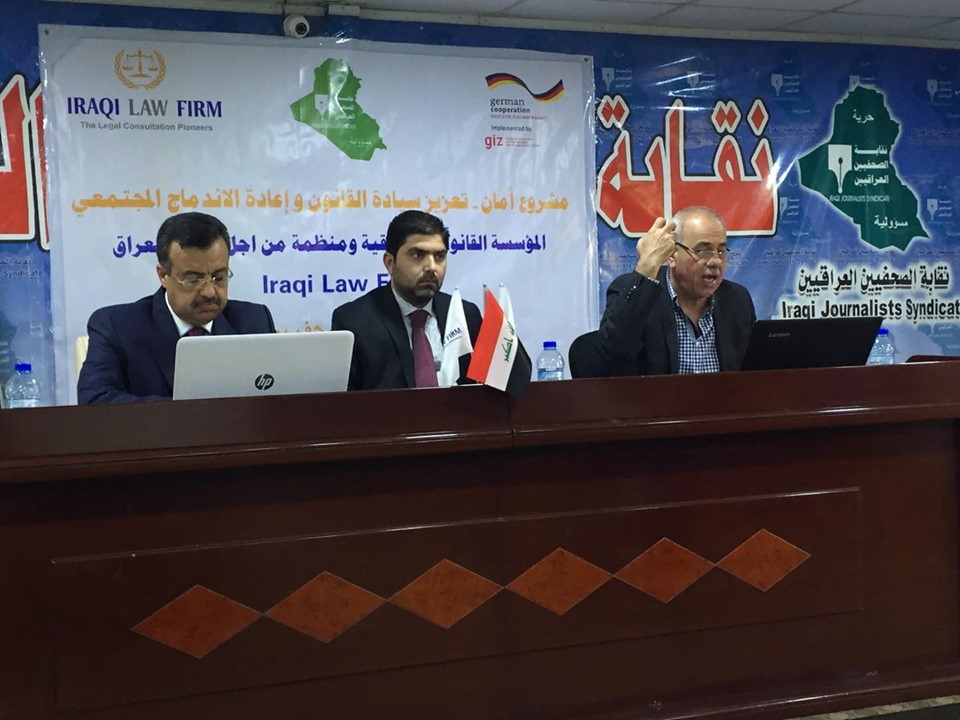 (بغداد – آشور) محمد الخالدي ..أقامت منظمة (من اجل وحدة العراق For Iraq ) ورشة تدريبية للصحفيين بالتعاون مع نقابة الصحفيين العراقيين بعنوان مشروع (امان AMAN) لتطوير سيادة القانون واعادة تاهيل المجتمع بعد النزاعات ، في قاعة نقابة الصحفيين العراقيين ببغداد.