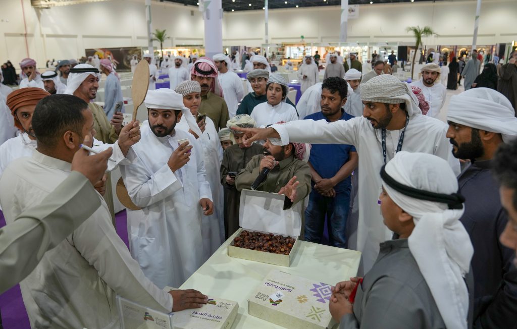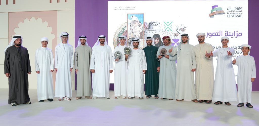 وتتواصل فعاليات ومسابقات مهرجان العين التراثي، حيث شهد يوم أمس إعلان أسماء الفائزين في مسابقة “الزاملي” بمزاينة التمور، حيث توج ضيفا الشرف الشيخ مسلم بن حم العامري والشيخ سالم بالركاض العامري، وسعادة عبيد خلفان المزروعي المدير التنفيذي لقطاع المهرجانات والفعاليات في هيئة أبوظبي للتراث الفائزين في المسابقة التي جاءت نتائجها بحصول صلهام حرموص سعيد صالح المزروعي على المركز الأول، وفي المركز الثاني ورثة عبدالله حاذه عبدالله المرر، وفي المركز الثالث احمد عبدالله عيسى الحمادي.