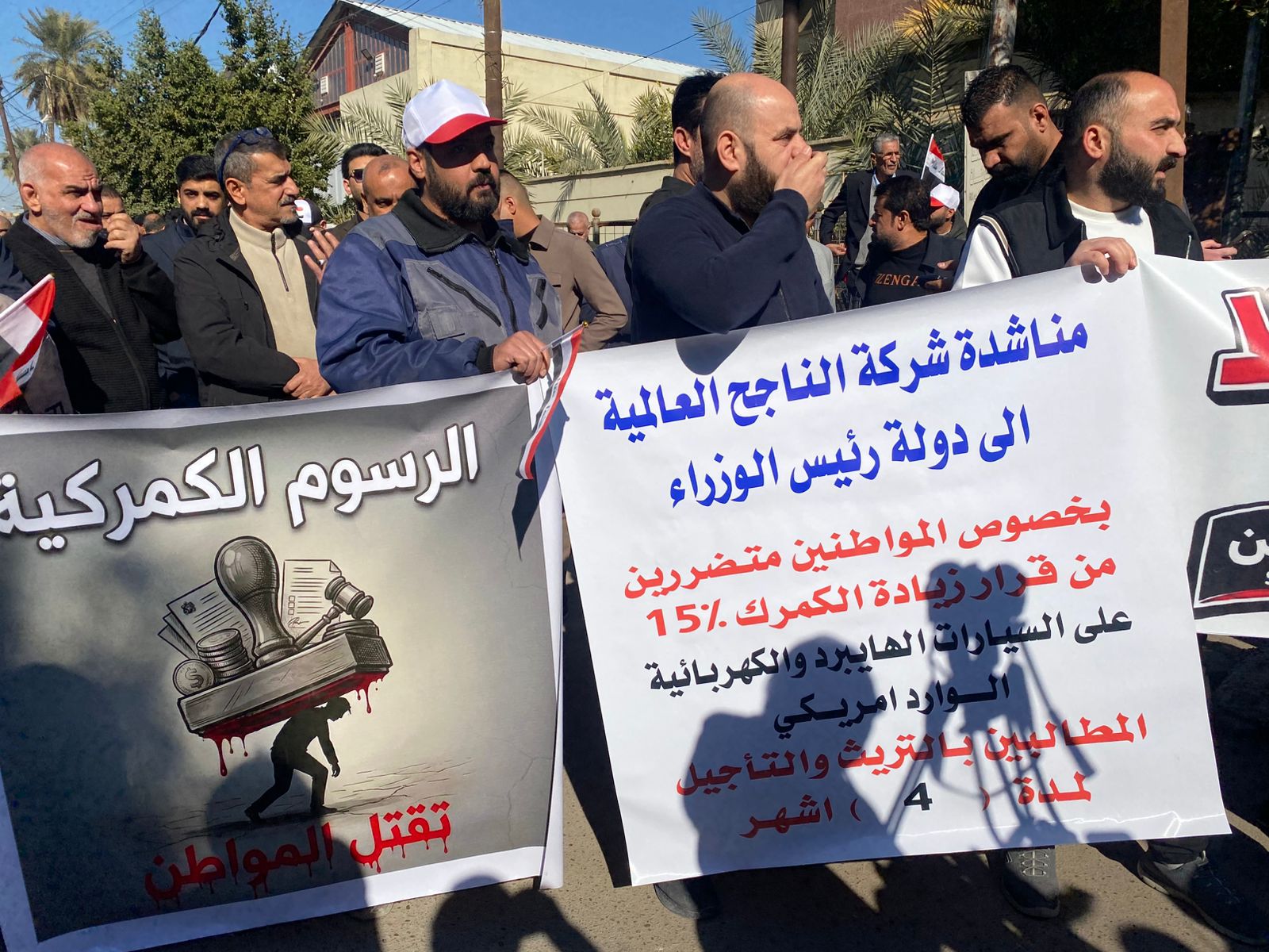 /آشور- شهدت بغداد اليوم .. تظاهرات غاضبة لتجار العراق امام مبنى الهيئة العامة للكمارك رفضًا لقرار رفع الرسوم ا